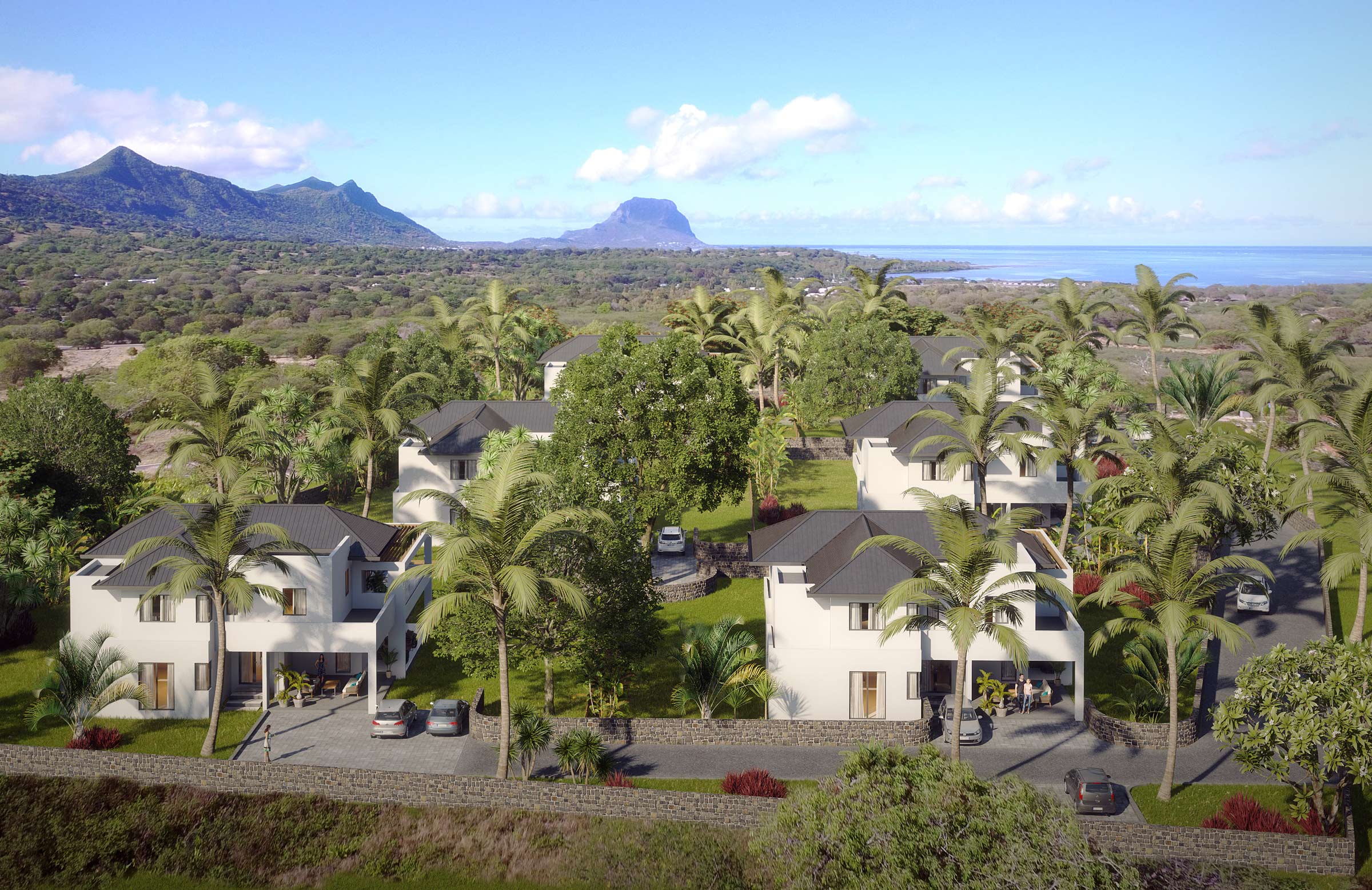 The development meets the requirements of the Property Development Scheme (PDS) and is hence accessible to non-citizens of Mauritius. Under the PDS scheme, the non-citizen is also eligible for a residence permit upon the purchase of a villa when he/she has invested more than USD 500,000 or its equivalent in any freely convertible foreign currency.